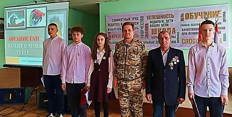 Об этом говорили на памятном мероприятии в школе, на которое были приглашены командир 7 инженерного полка полковник Ковальчук Владимир Владимирович; заместитель командира по идеологической работе подполковник Науменко Дмитрий Владимирович; участник боевых действий в Афганистане - Одинец Виктор Иванович.